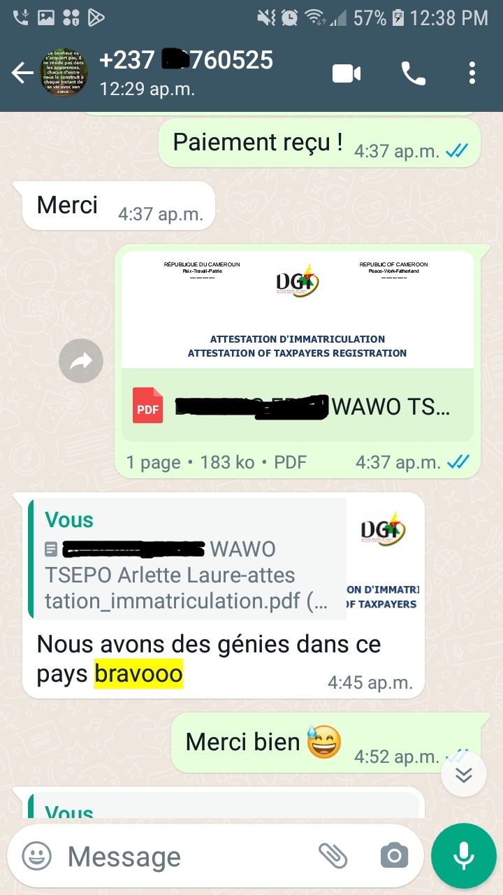 Vous recevez votre document sur WhatApp et vous l’imprimer